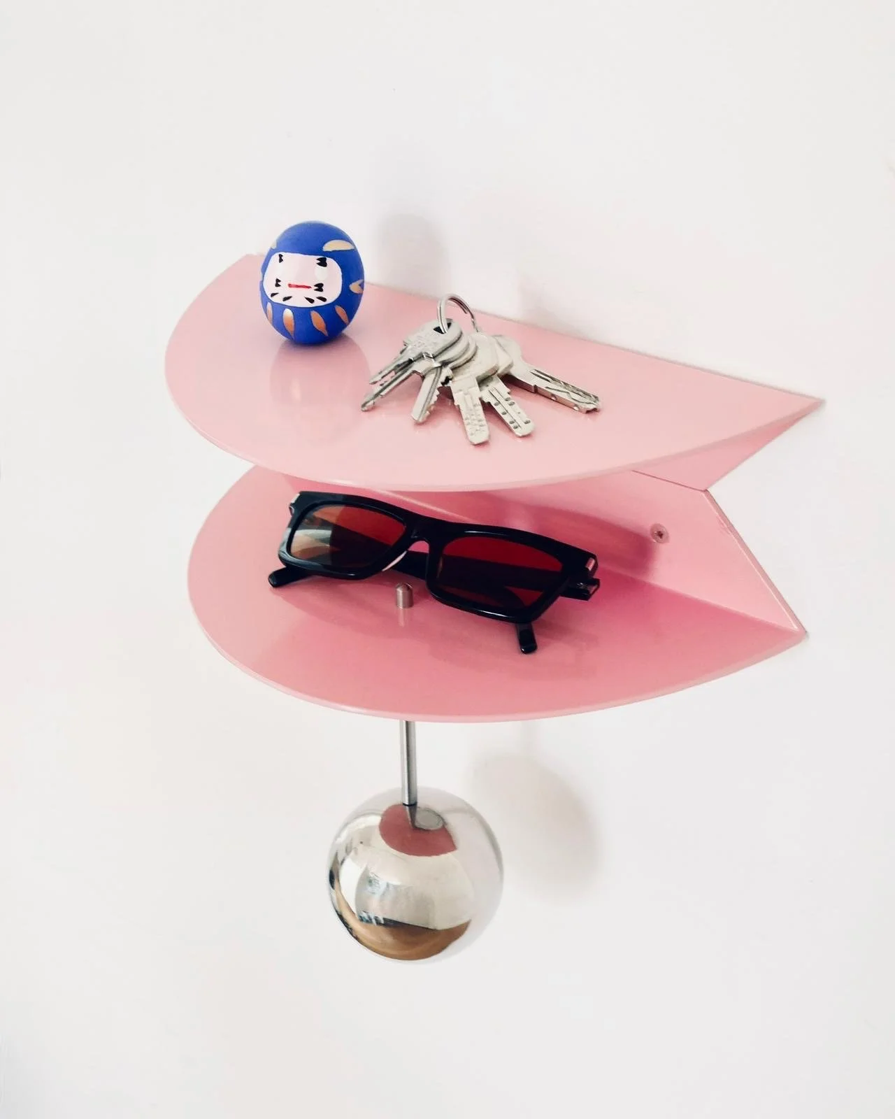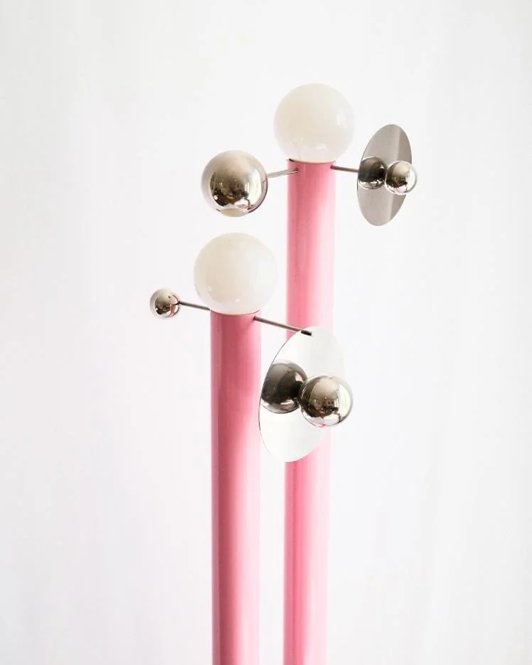 Tom, a French designer based in Paris, works with metal, glass and marble in a dialogue between rigorous geometry and cosmic poetry.